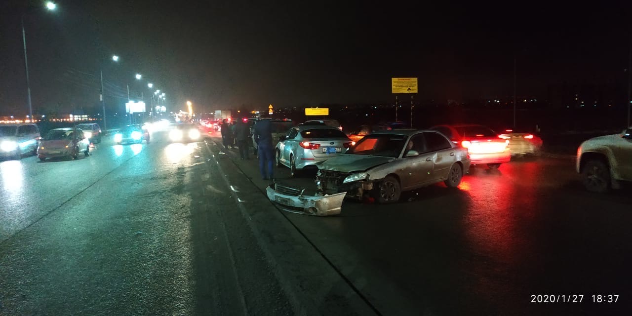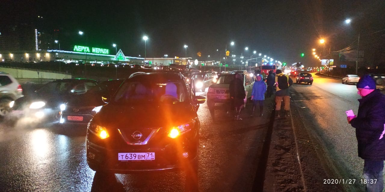 Вчера вечером, 27 января, в Туле на Восточном обводе случилось массовое ДТП. Из-за внезапной неполадки автомобиля, иномарка «встретилась» на своем пути еще с пятью «иностранцами».