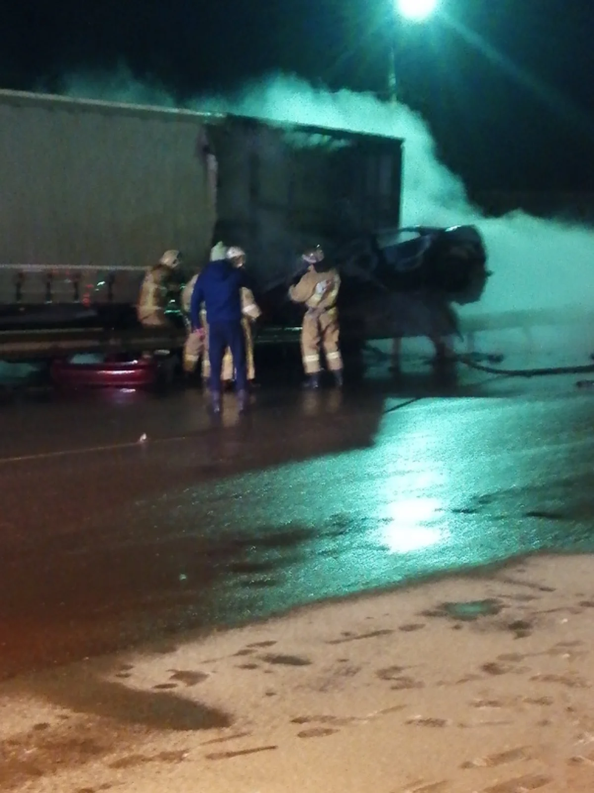 Очевидцы аварии поделились фото с места происшествия и сообщили, что в поселке Тёплое Тепло-Огаревского района , легковой автомобиль «Шевроле Ланос», предположительно, не справился с управлением, врезался в отбойник, от этого иномарка подлетела и врезалась в припаркованную фуру, после чего сразу же загорелась. По словам очевидцев, в машине находилось три человека, одна пассажирка погибла от полученных травм, а женщина-водитель доставлена в Щекинскую ЦРБ с ожогами различной тяжести, как сообщает Myslo.