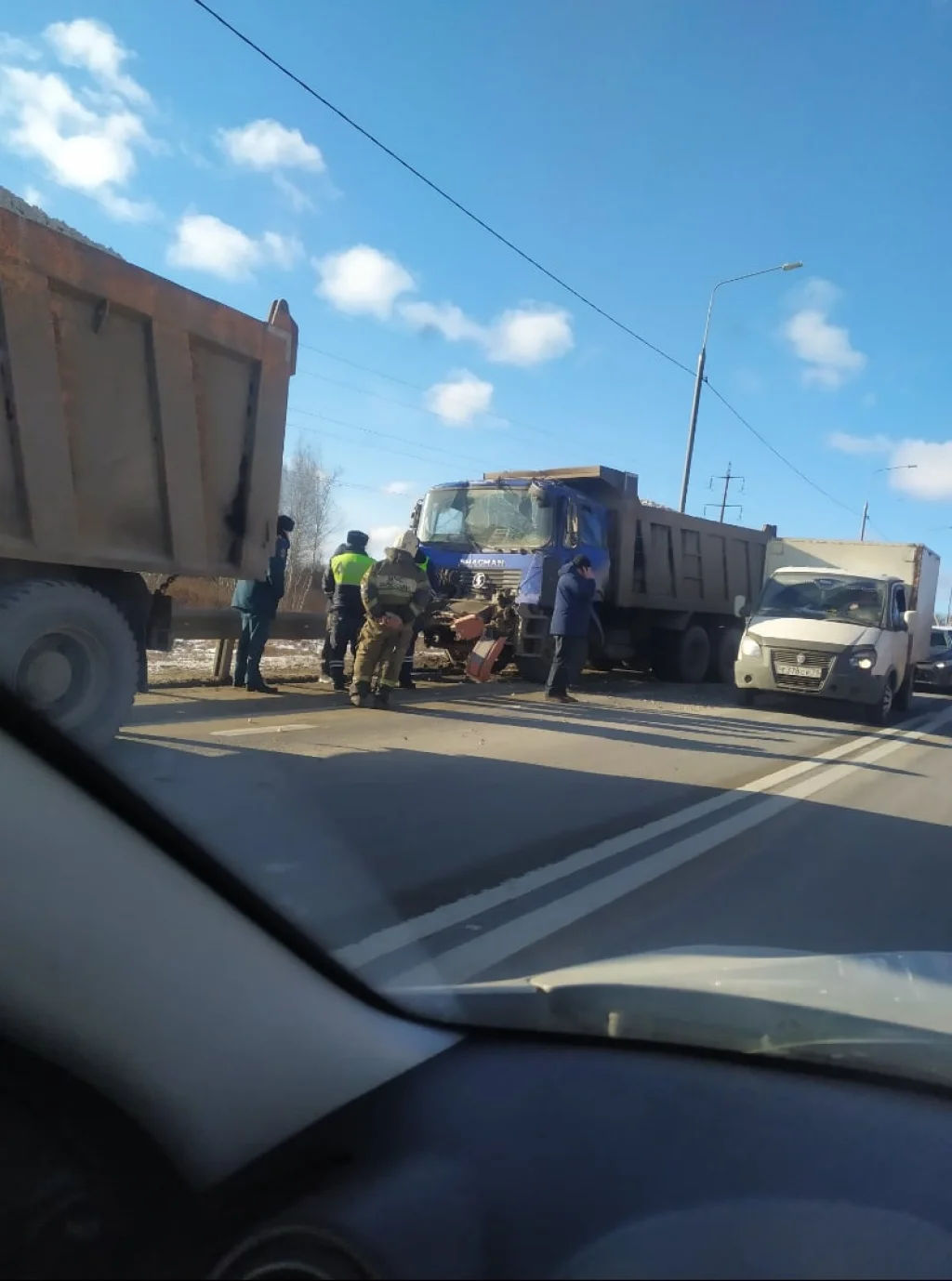 По предварительным данным, по дороге двигались большегрузы, наполненные щебнем, и у одного из КамАЗа, который шёл сзади, в какой-то момент отказали тормоза, гружёного щебнем, отказали тормоза. Из-за этого водитель грузовика не смог справится с управлением, поэтому врезался сначала во впереди идущий такой же большегруз, а затем от удара отлетел в отбойник.