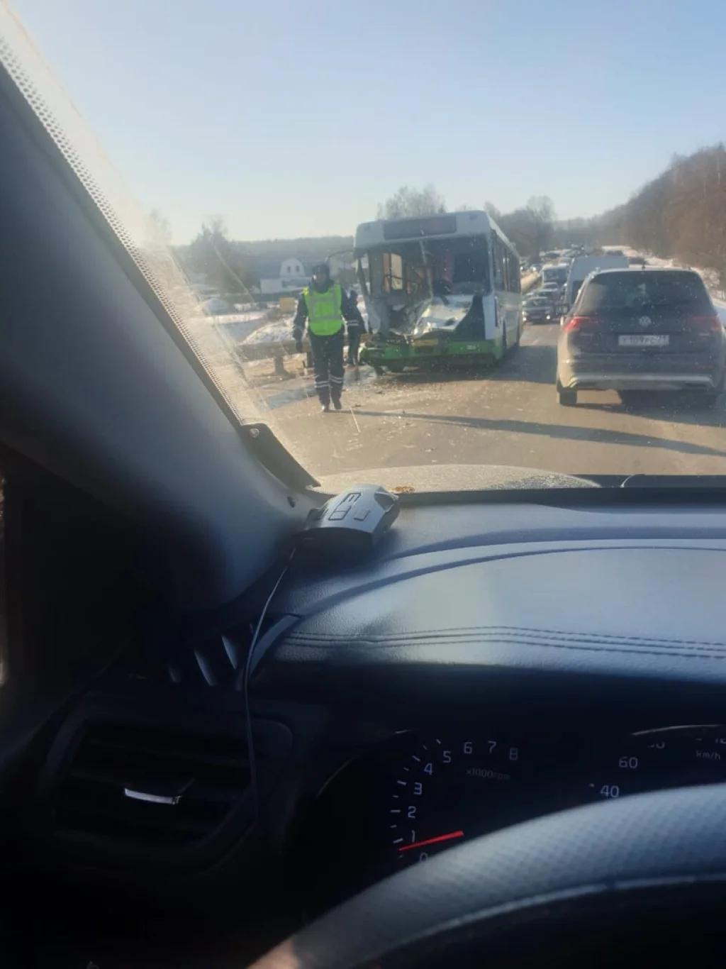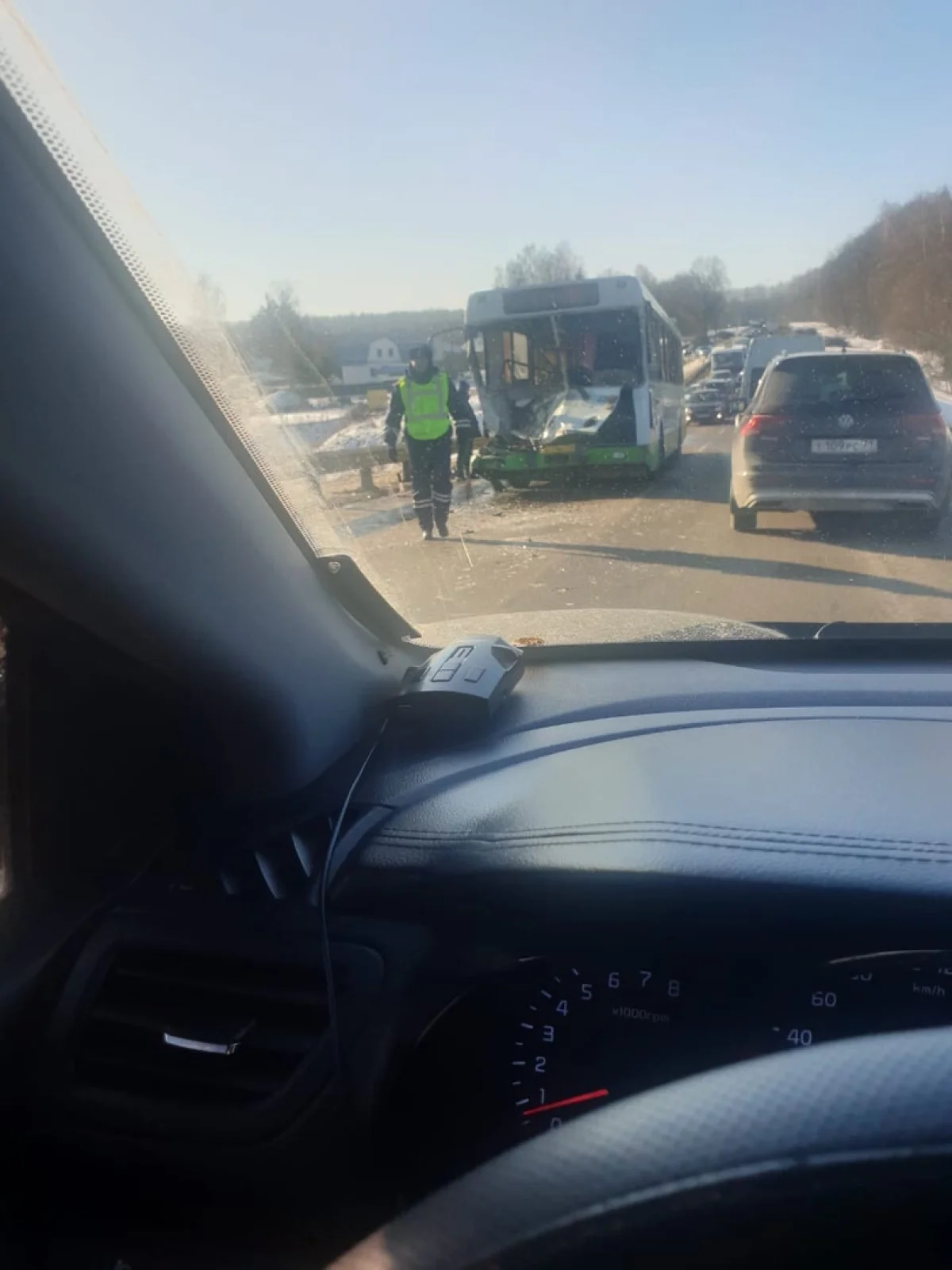 По предварительной информации, сегодня, 10 февраля, около 10:00 около д.Кочаки произошло столкновение автобуса, который двигался по 114 маршруту с другим транспортным средством. По предварительной информации, автобус столкнулся с автоцистерной ГАЗ, а в аварии пострадали 7 пассажиров автобуса, которые были доставлены в медицинское учреждение.