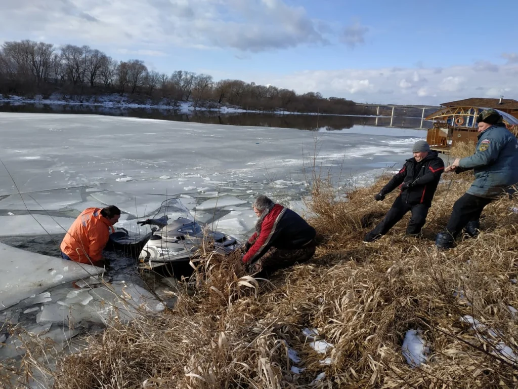В трех метрах от берега лед провалился и мужчина на снегоходе начал тонуть. Инспекторы ГИМС помогли выбраться не только мужчине, но и достали из воды утонувшую технику.