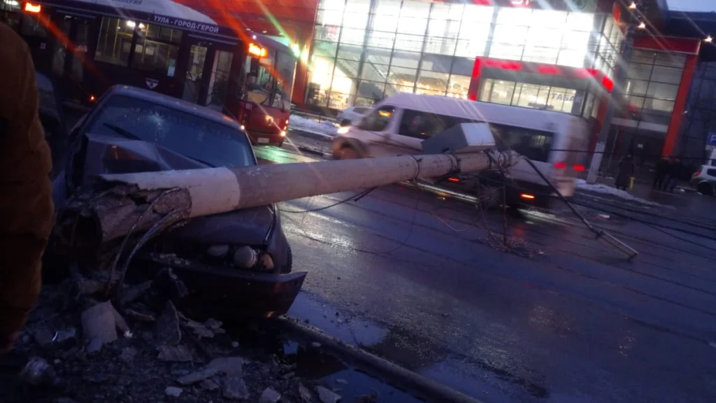 Приблизительно в 18:15 в районе дома № 65-а автомобиль «БМВ» влетел в столб.