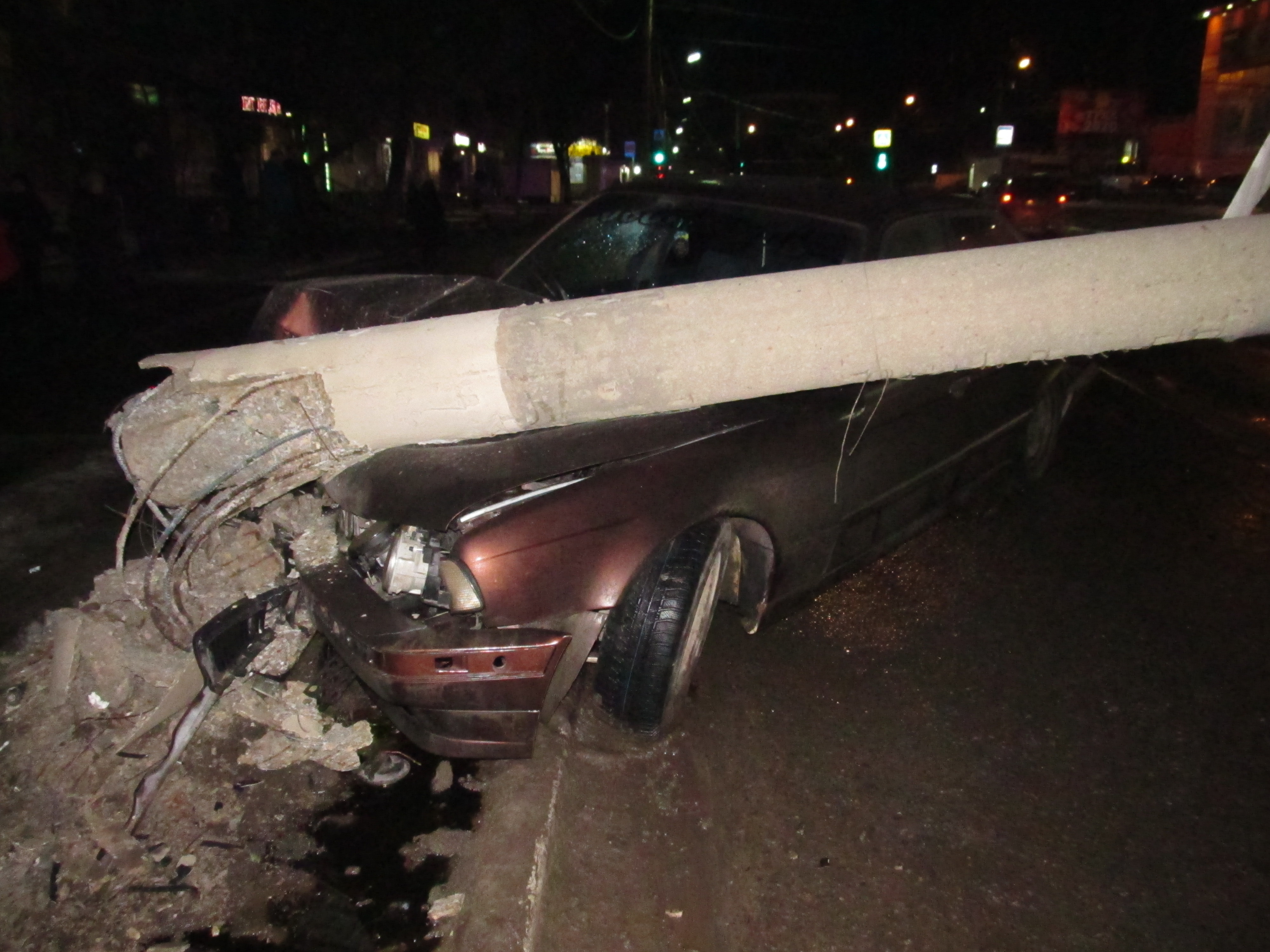 Пострадавших нет, но автомобиль, врезавшийся в опору освещения, скорее всего, восстановлению не принадлежит