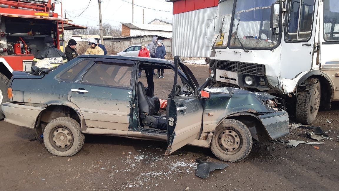 Авария произошла около 12 дня 5 марта, когда 47-летний водитель «ВАЗа» не справился с управлением и столкнулся с припаркованным автобусом «ПАЗ». От удара легковушку сильно покорежило, передняя часть автомобиля разлетелась по дороге.