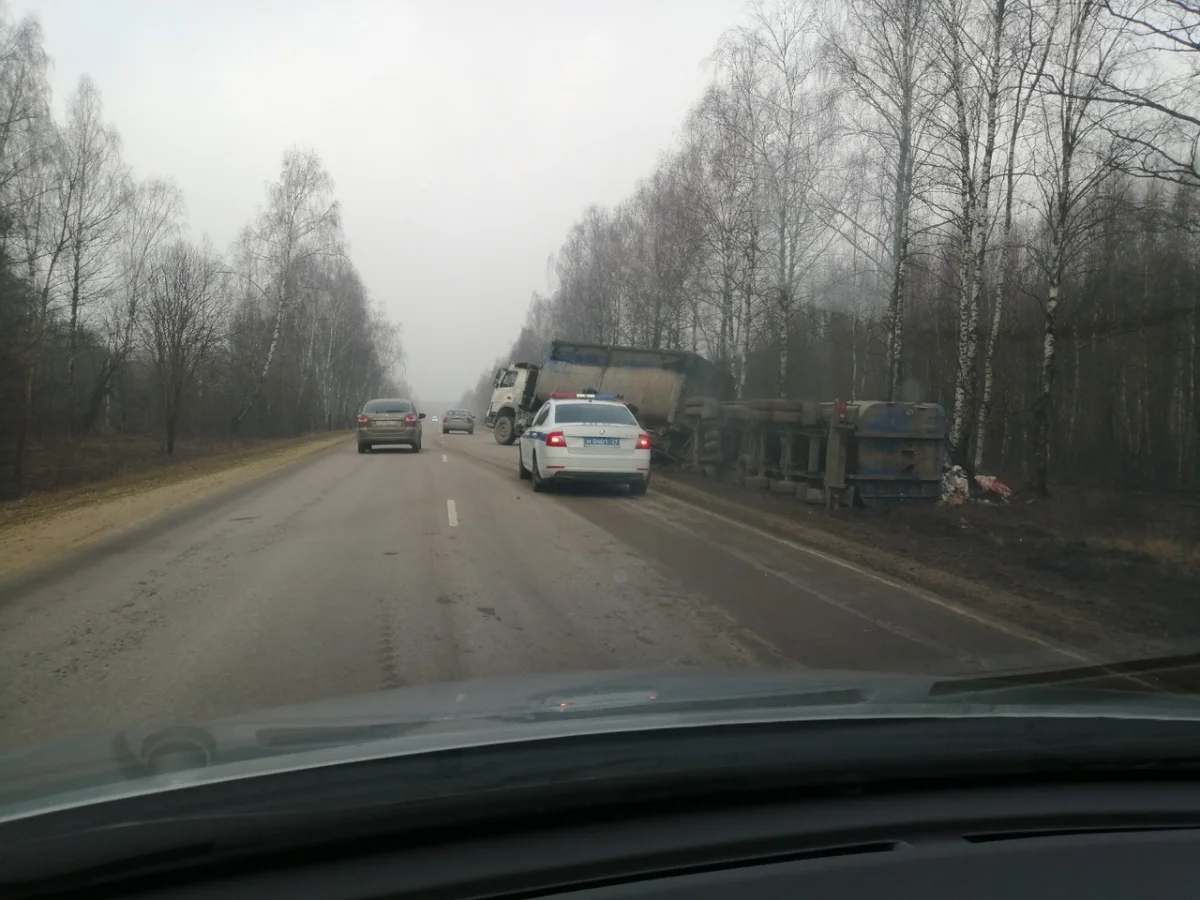 На 22 км дороги «Тула-Белев» мусоровоз "прилёг" на обочину. По предварительно информации, водитель большегруза не справился с управлением во время разъезда со встречным грузовиком и «ушёл» на обочину. Из-за резкого манёвра один из прицепов мусоровоза опрокинулся, а его содержимое равномерно рассыпалось по земле.