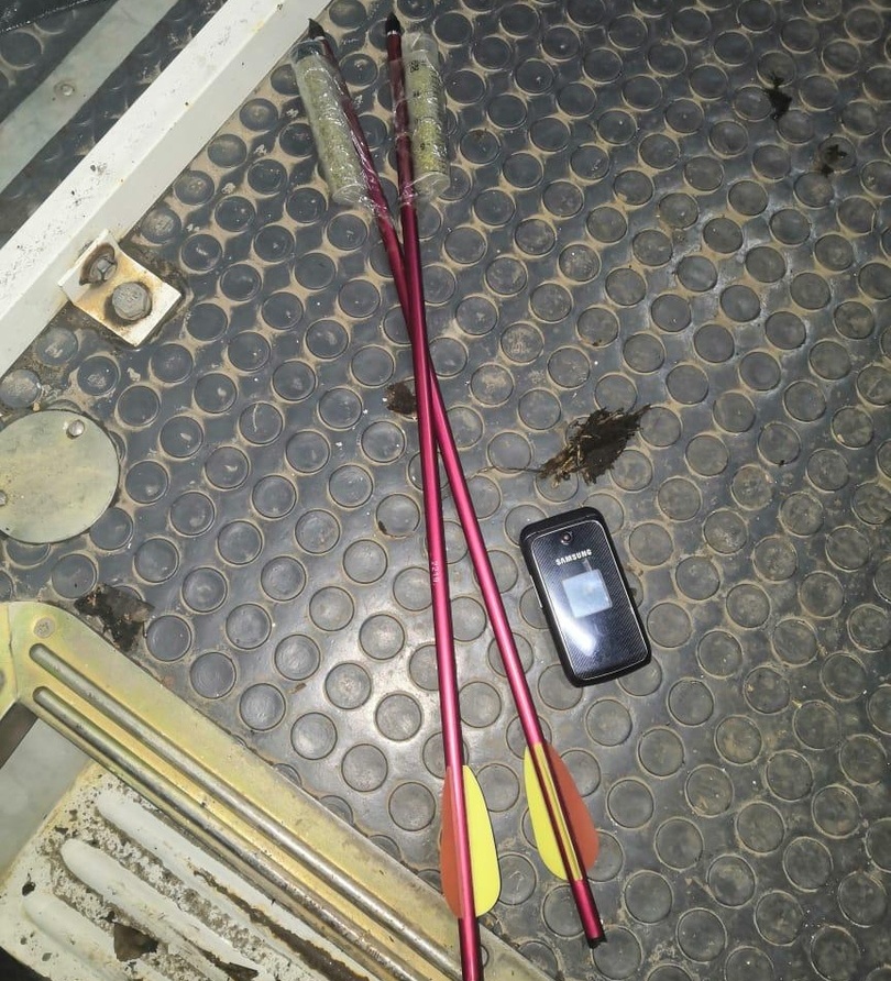 В ходе личного досмотра у 29-летнего подозреваемого обнаружили и изъяли две арбалетные стрелы с прикрепленными свертками с наркотиком, у его 23-летнего подельника также изъяты две стрелы со свертками наркотиков. Всего у них изъяли 18.2 г марихуаны и 19,56 г амфетамина.