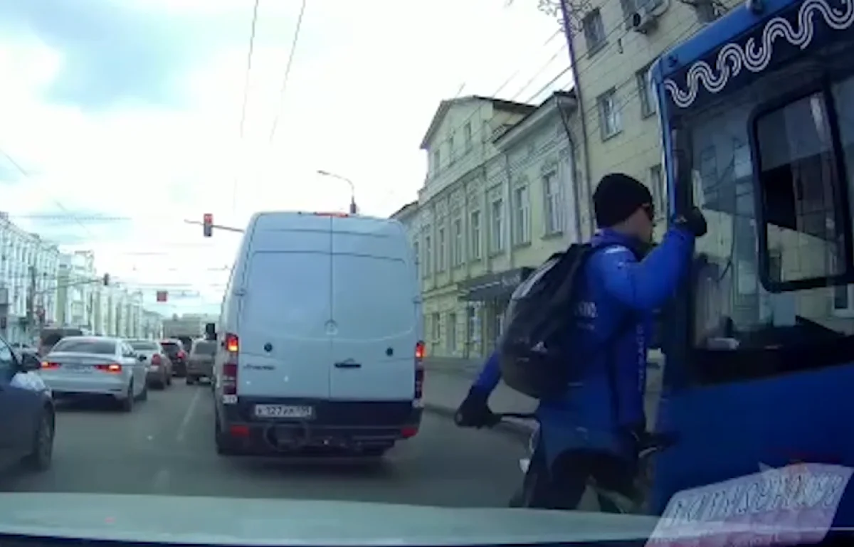 В Туле неадекватный велосипедист разбил стекло водителю автобуса. Инцидент произошел на улице Советской, об это очевидцы сообщили в соцсетях.