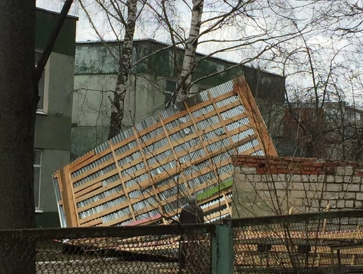 Как сообщает очевидец, ветер сорвал шифер веранды и отбросил её практически к центральному входу в детский сад. К счастью, малышей в тот момент на прогулке не было, иначе неизвестно, чем всё могло бы закончиться.
