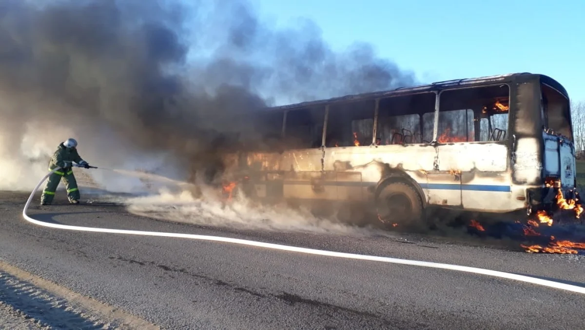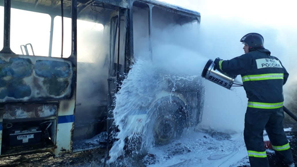 Спасателям удалось потушить огонь за 4 минуты, однако за это время автобус сгорел полностью. Известно, что на пожаре пострадал один человек.