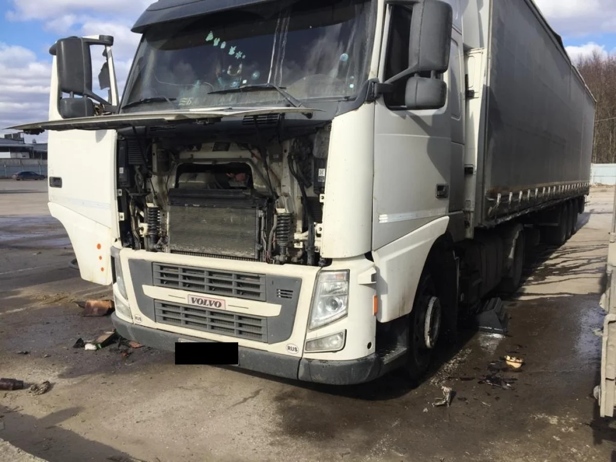 ЧП случилось утром 23 марта на Одоревском шоссе. Около 10:00 на участке дороги загорелся большегруз «Вольво».