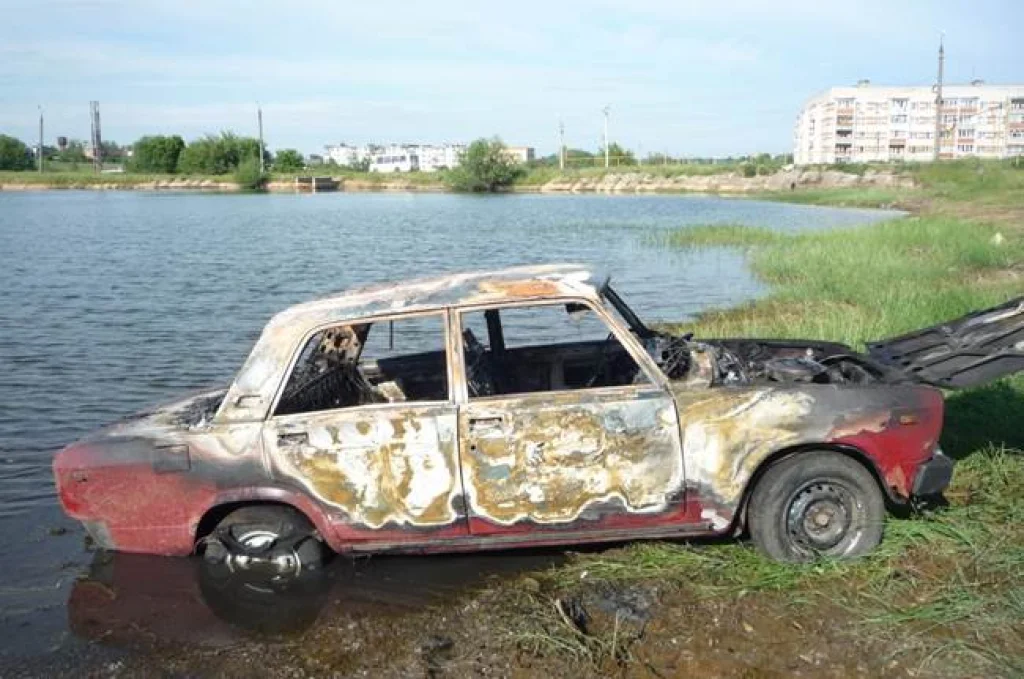 У пруда в Богородицке сгорел автомобиль ВАЗ-2105
