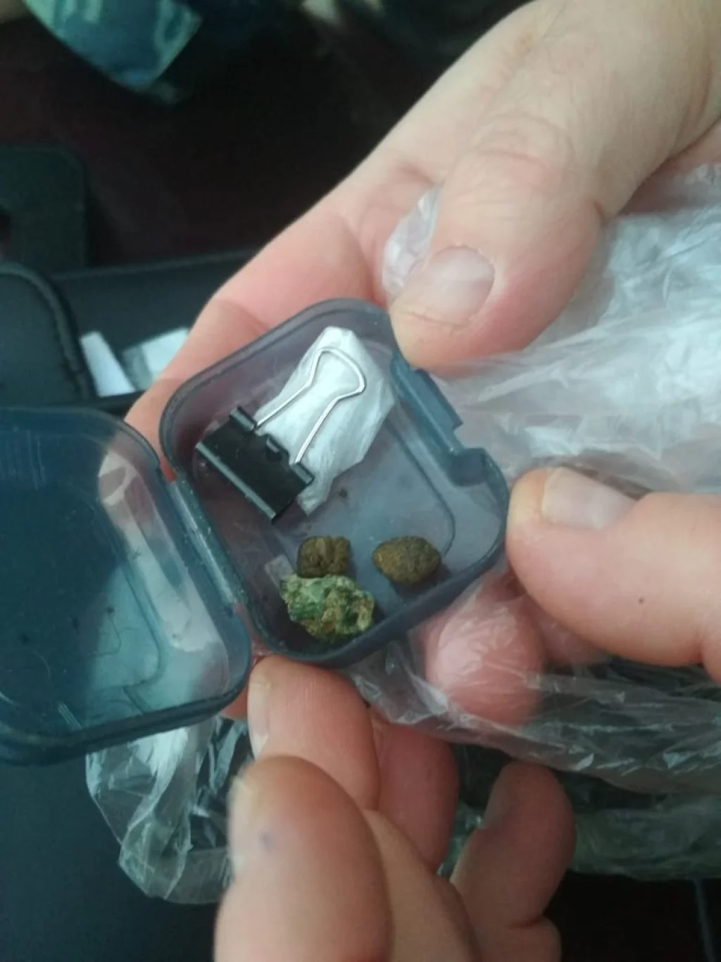 Поведение водителя не соответствовало обстановке и напрягло сотрудников ГАИ. У полицейских возникло подозрение, что молодой человек может находиться под воздействием наркотиков либо же хранить запрещенные вещества в салоне авто. Для разъяснения ситуации на место происшествия была вызвана следственно-оперативная группа , которая при досмотре машины нашли в салоне «Шкоды» свертки с веществом белого и зеленого цвета, похожие на наркотики. После проведения экспертизы все подозрения подтвердились - автомобилист хранил при себе марихуану и «соль».