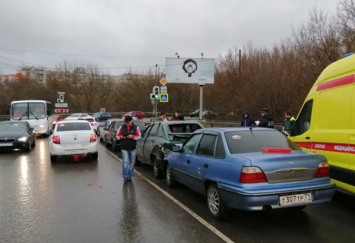 В Туле на Одоевском шоссе столкнулись три "ВАЗа" и одна "Daewoo": имеются пострадавшие