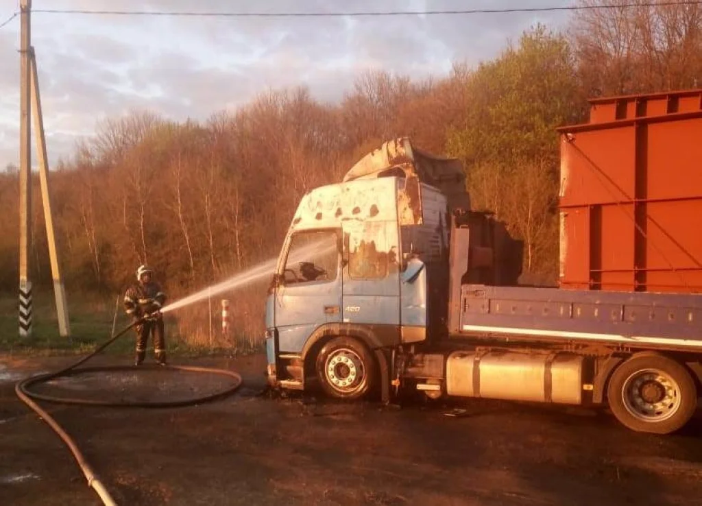 На место происшествия отправили пожарные расчеты, огонь потушили за три минуты. За это время успела выгореть кабина грузовика, оплавились передние колеса. Известно, что пострадал один человек.