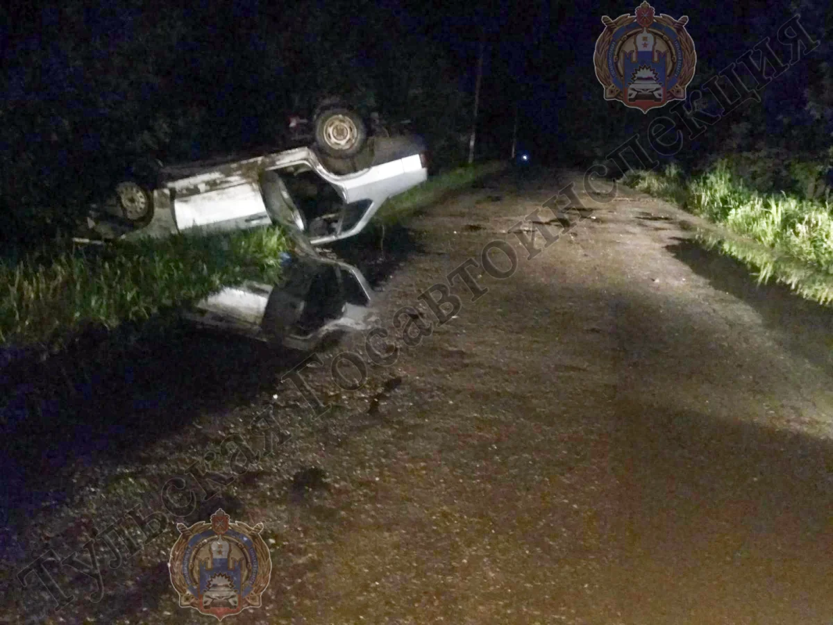 В Тульской области водитель "ВАЗа" без прав опрокинулся на проезжей части дороги