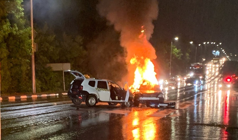 Авария с участием такси в Туле: второй автомобиль загорелся