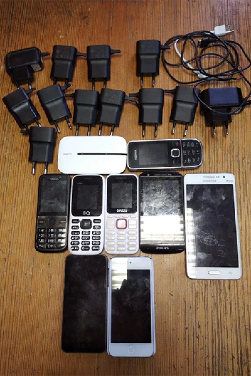 При себе у него был полиэтиленовый пакет, внутри которого обнаружили 5 свертков, обмотанных изоляционной лентой. В них находились 6 мобильных телефонов, 12 зарядных устройств, wi-fi роутер и 2 плеера.