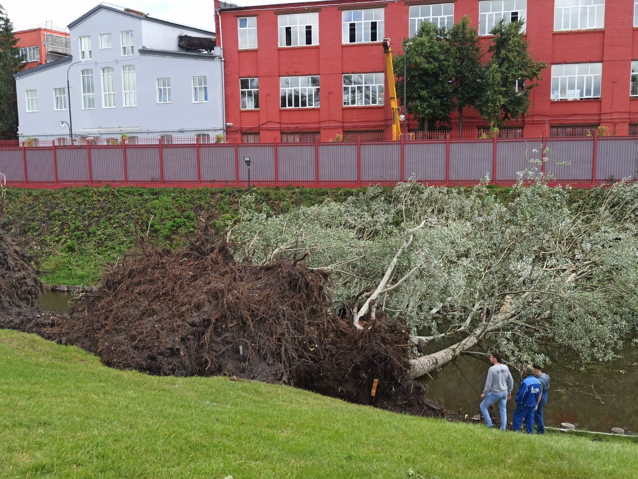 В Заречье ураган погнул светофор и снес остановку. На ул. Коминтерна, 4 была повреждена крыша дома. На Казанской набережной огромное дерево рухнуло в воду.