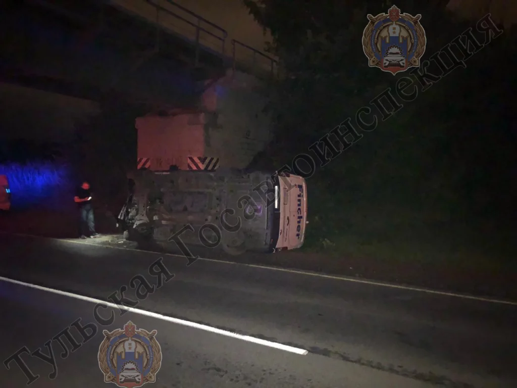 Микроавтобус врезался в опору путепровода и улетел в кусты на трассе под Тулой
