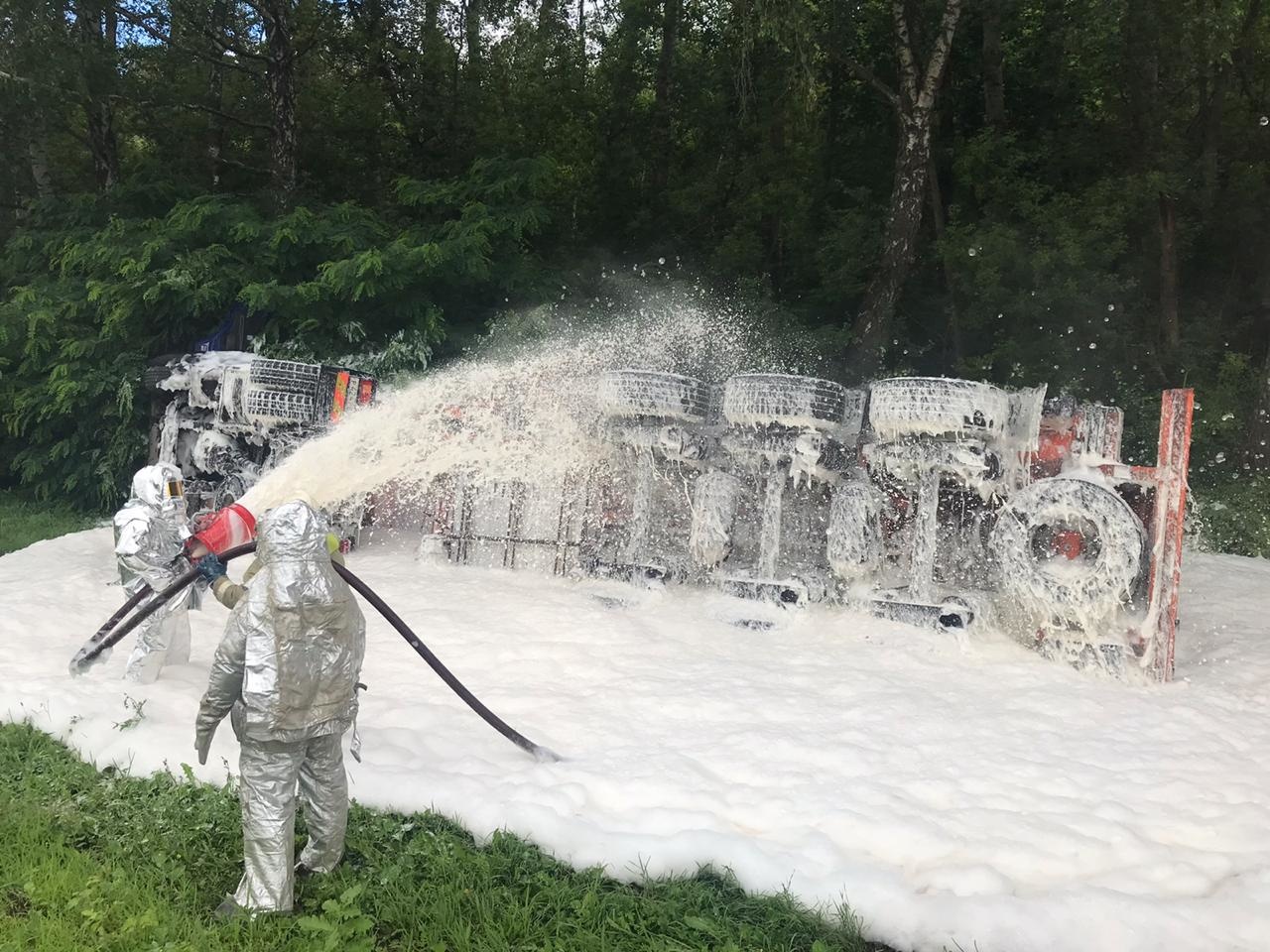 Спасатели «потушили» цистерну и удостоверились в том, что горение отсутствует. Разлива топлива не произошло.