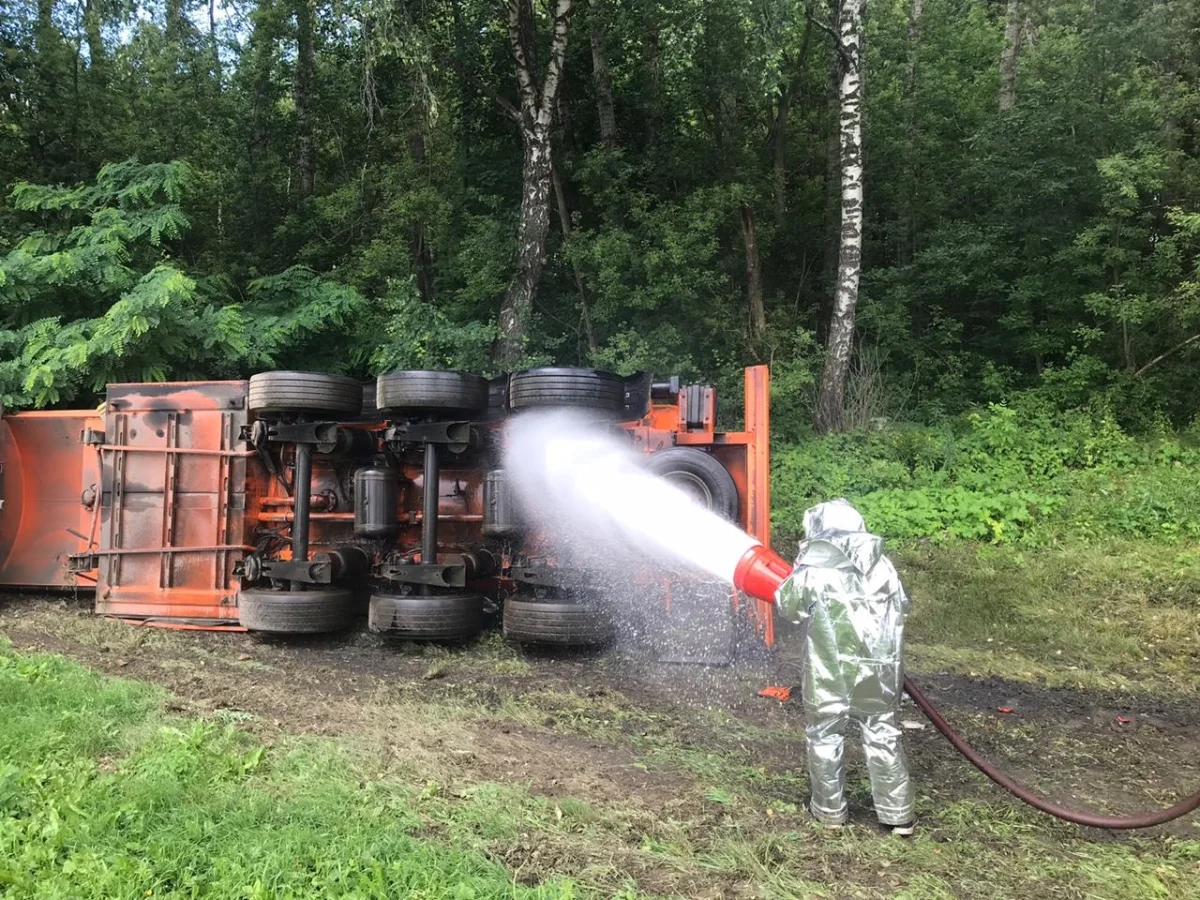 Днем 17 июля в Новомосковске на трассе "Калуга-Тула-Михайлов-Рязань" произошло ДТП. На 207-ом км автодороги автоцистерна с топливом опрокинулась в кювет.