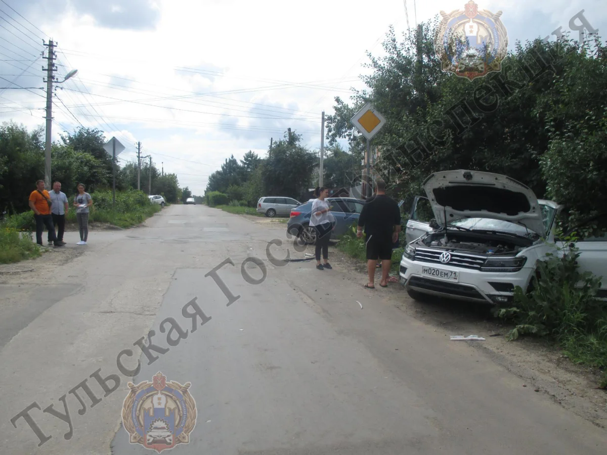 ДТП с участием двух иномарок произошло в Туле утром 20 июля. На ул. Панфиловцев 28-летняя автоледи за рулем Chevrolet Cruze выезжала со второстепенной дороги на главную и не уступила право проезда. Из-за нарушения ПДД она столкнулась с Volkswagen Tiguan за рулем с 52-летней женщиной. От удара вторая иномарка перевернулась.