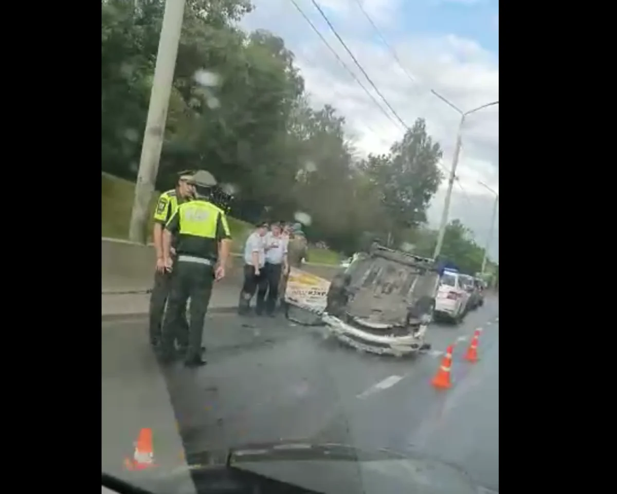 На Калужском шоссе в Туле перевернулась машина такси. Видео