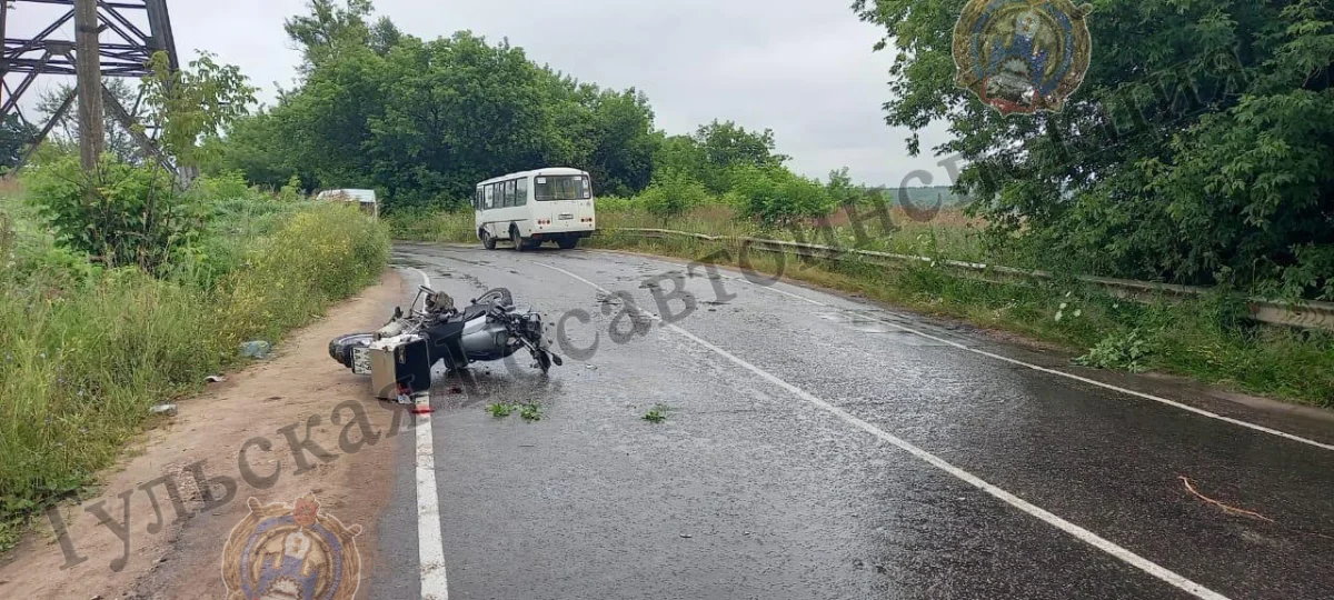 В ДТП с автобусом под Тулой пострадал мотоциклист