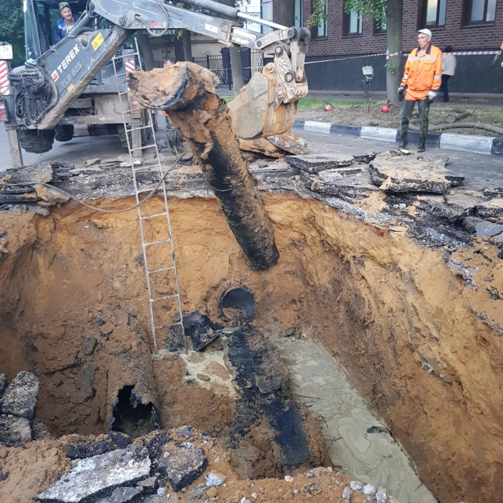 оперативные службы города., готовится замена аварийного участка коллектора.