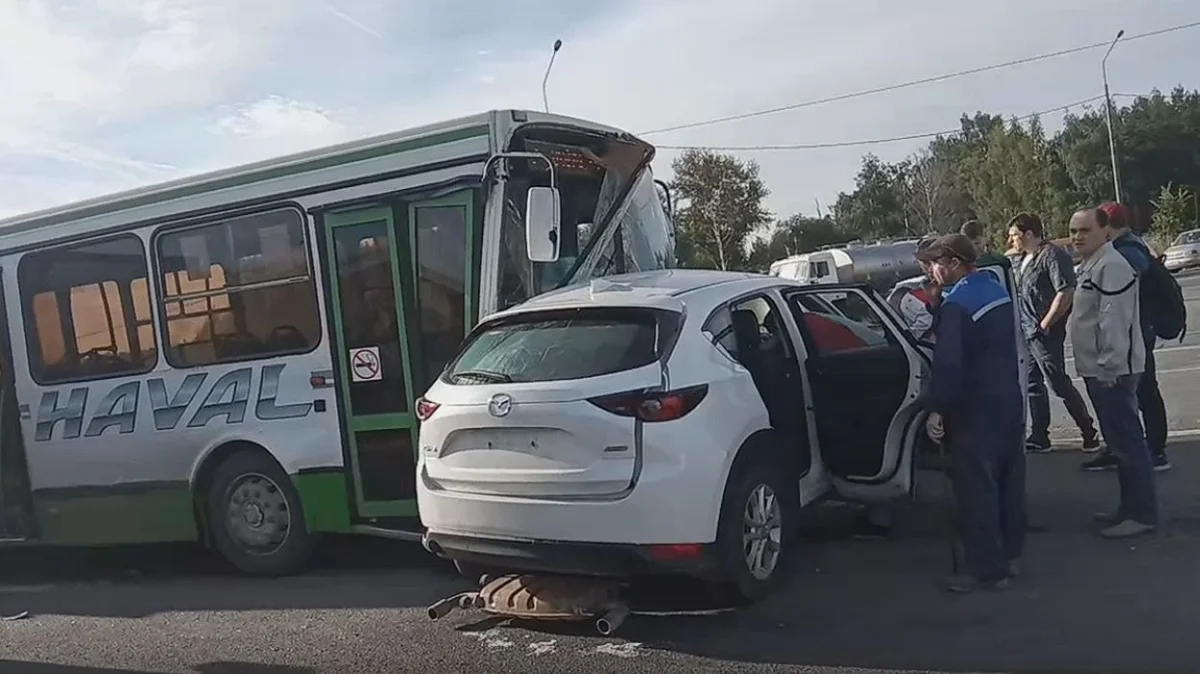 В Новомосковске пассажирский автобус не поделил дорогу с «Маздой»