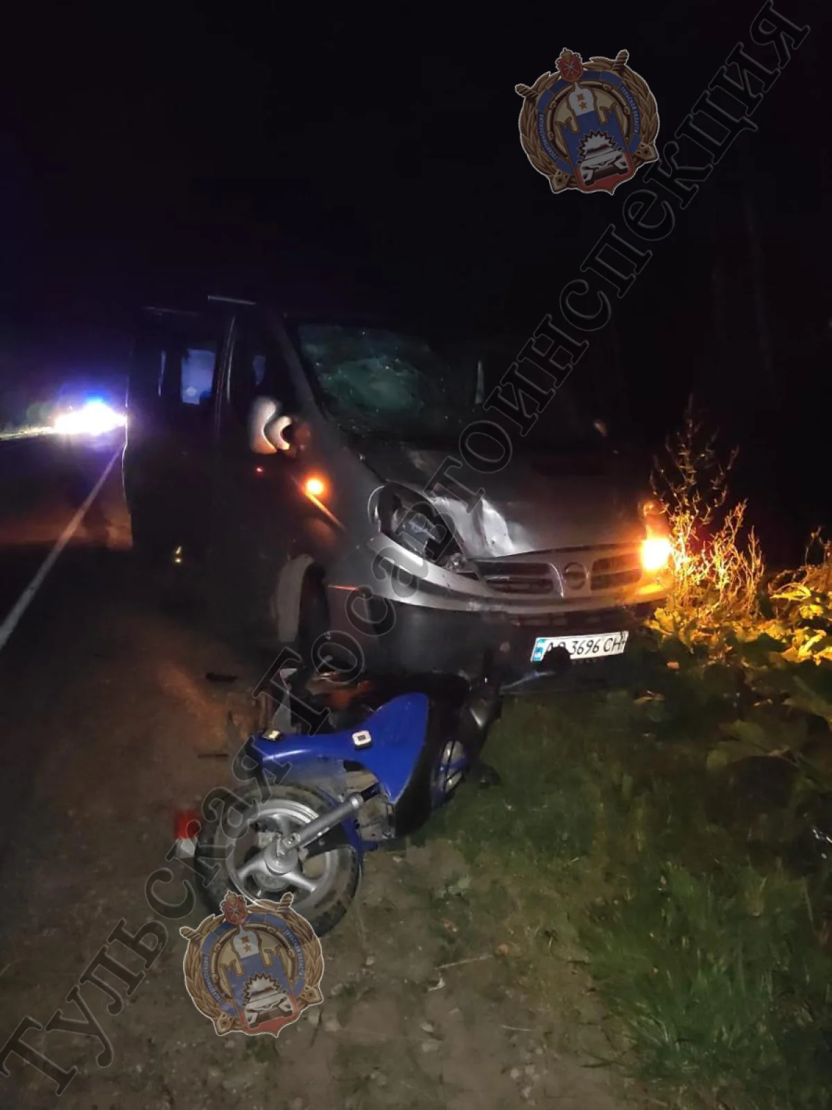 В Тульской области водитель иномарки насмерть сбил пешехода, идущего по дороге с мопедом