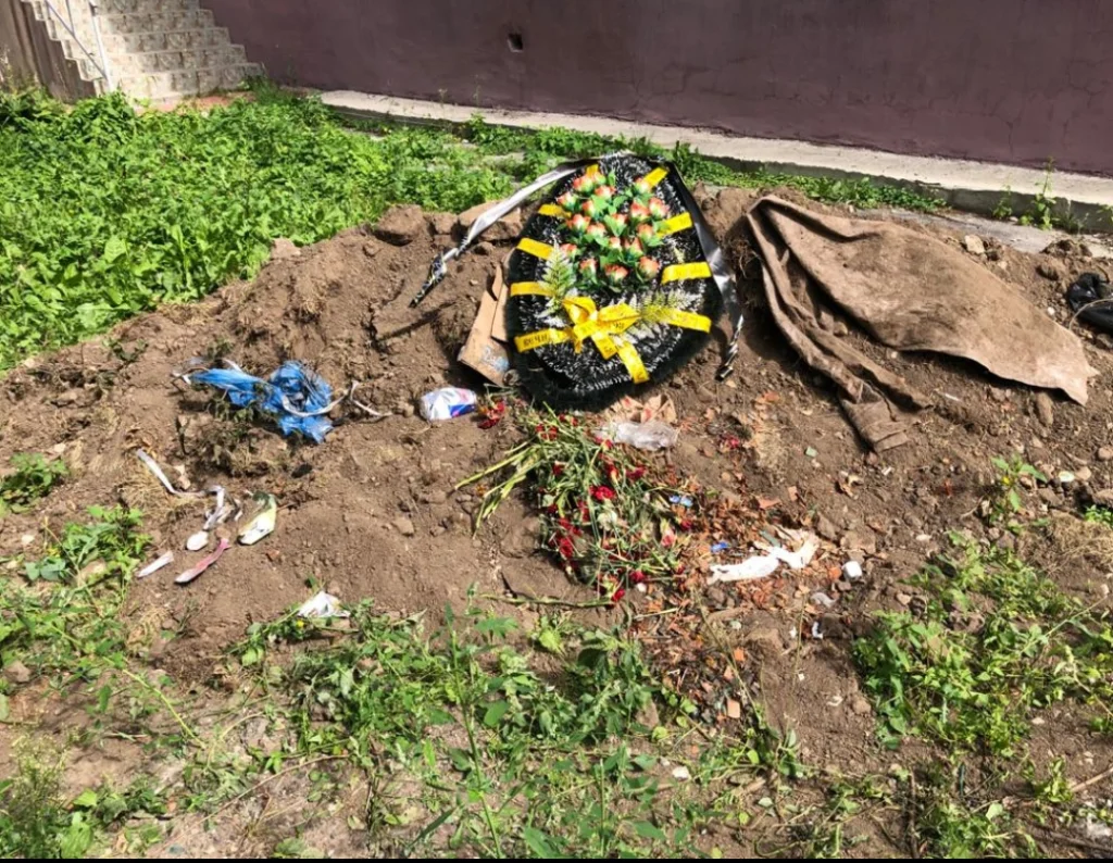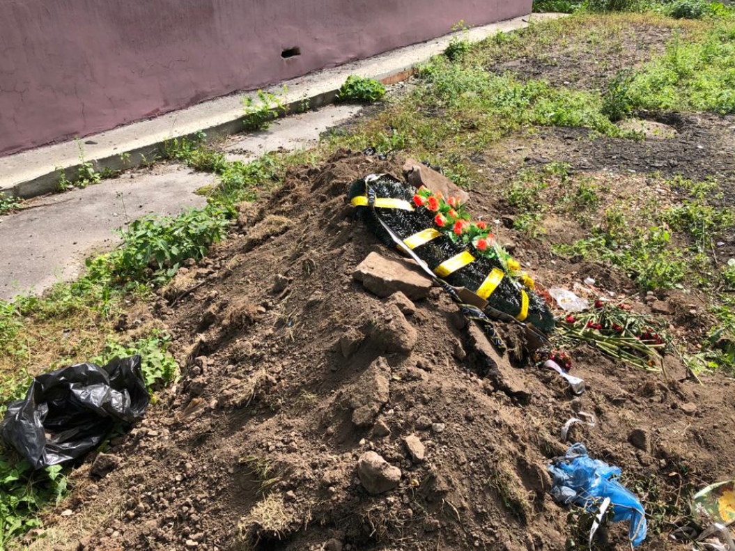 Тулякам для благоустройства двора привезли землю вместе могильными венками и цветами