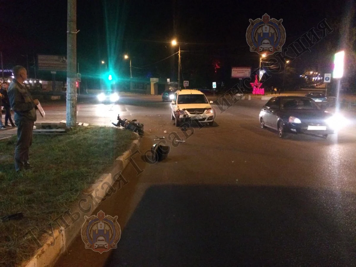 20 августа в 22:00 в Узловой на ул. Беклемищева 17-летний юноша на скуторе Stels Skif столкнулся с автомобилем Lada Largus.