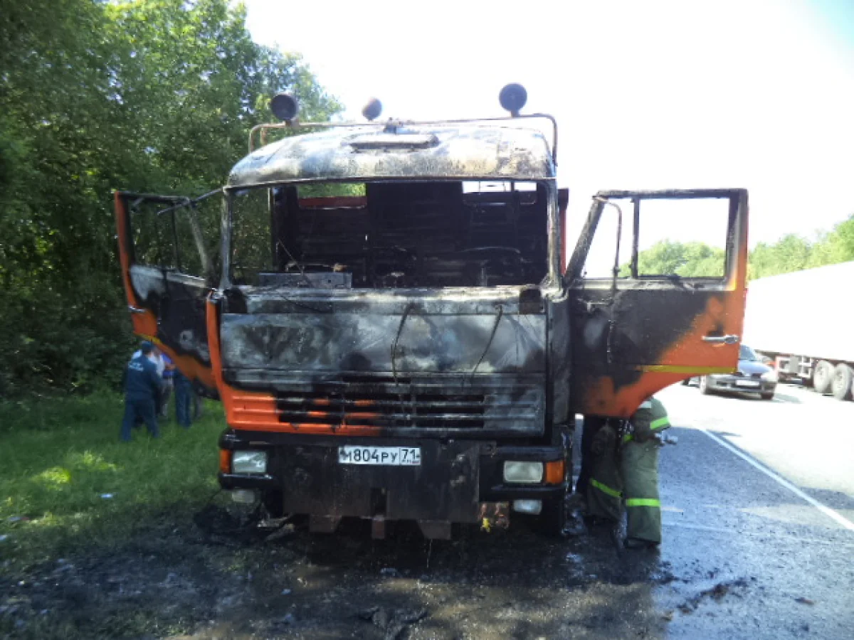 Сообщение об этом поступило на пульт диспетчера «01» 1 июля в 09.24. Звонивший рассказал, что на 236-ом километре трассы М-2 в Щекинском районе загорелся "КАМАЗ". Чтобы добраться на место происшествия пожарным понадобилось 5 минут.