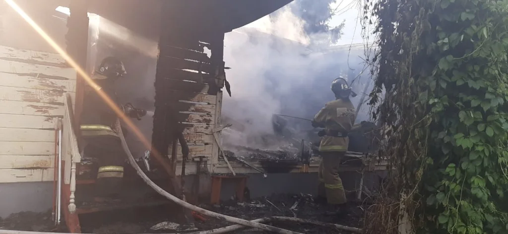 В результате пожара пострадал 46-летний мужчина. У него диагностированы ожоги кистей рук. Дом на месте происшествия выгорел полностью.