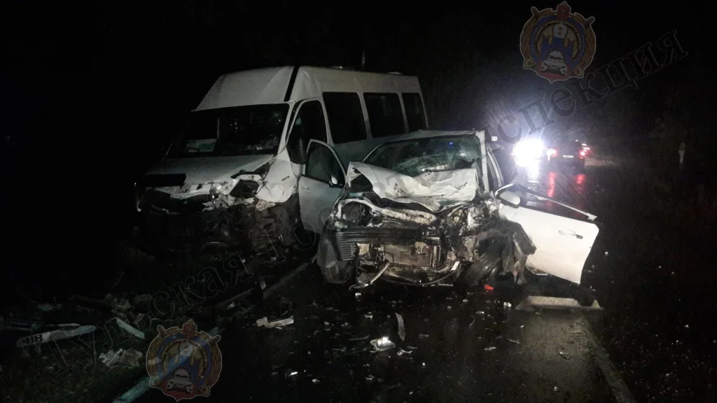 В Тульской области столкнулись на встречке легковушка и микроавтобус