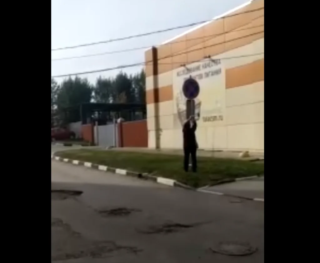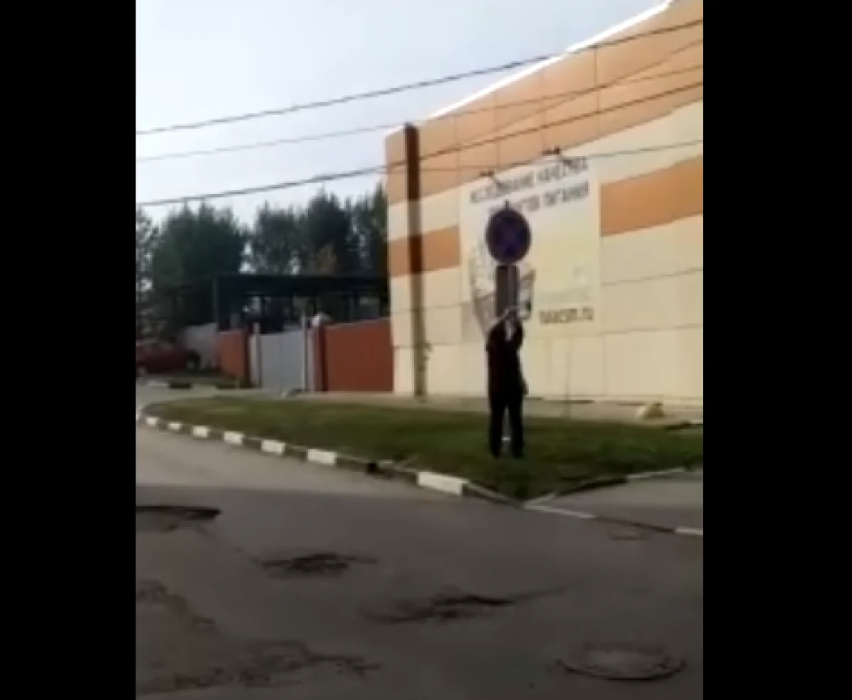 В тульских пабликах появилась видеозапись одного впечатляющего действа двух человек - мужчины и женщины. На одной из парковок города возле торгового центра туляки начали уничтожать дорожный знак.