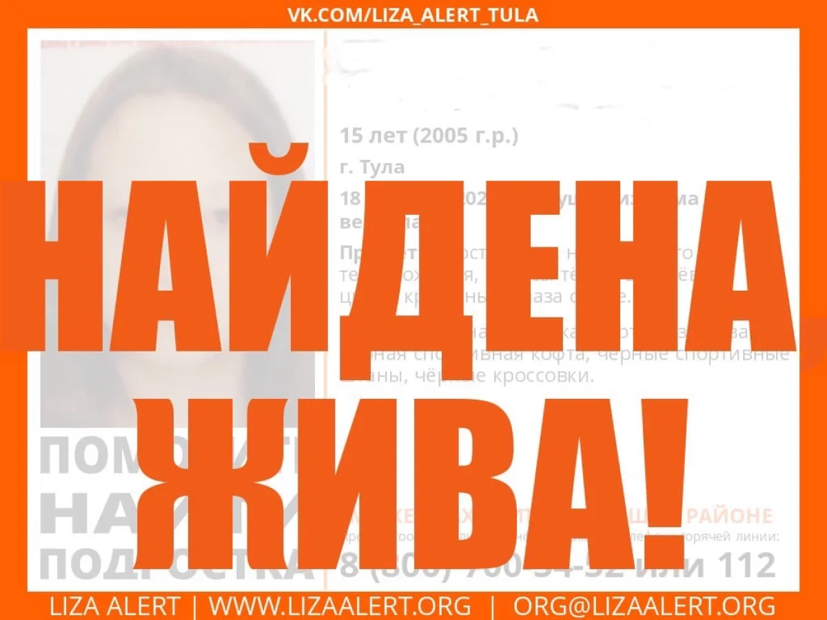Пропавшую девочку-подростка из Тулы нашли. Об этом стало известно поздним вечером 20 октября.