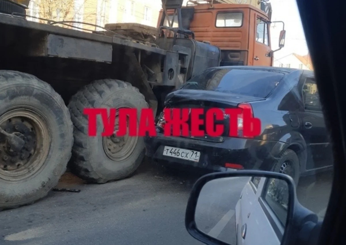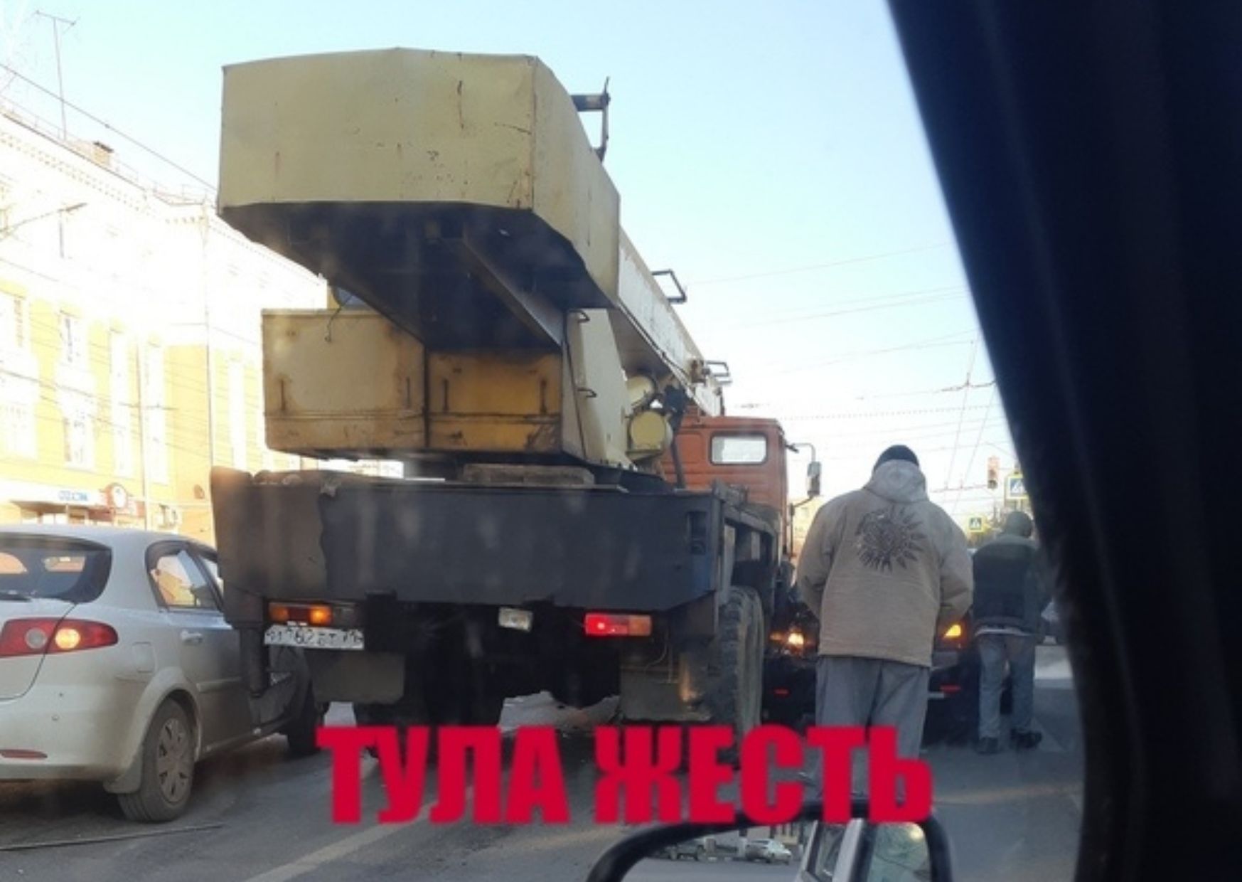 В Туле на Октябрьской в ДТП повстречались три легковых автомобиля и автокран