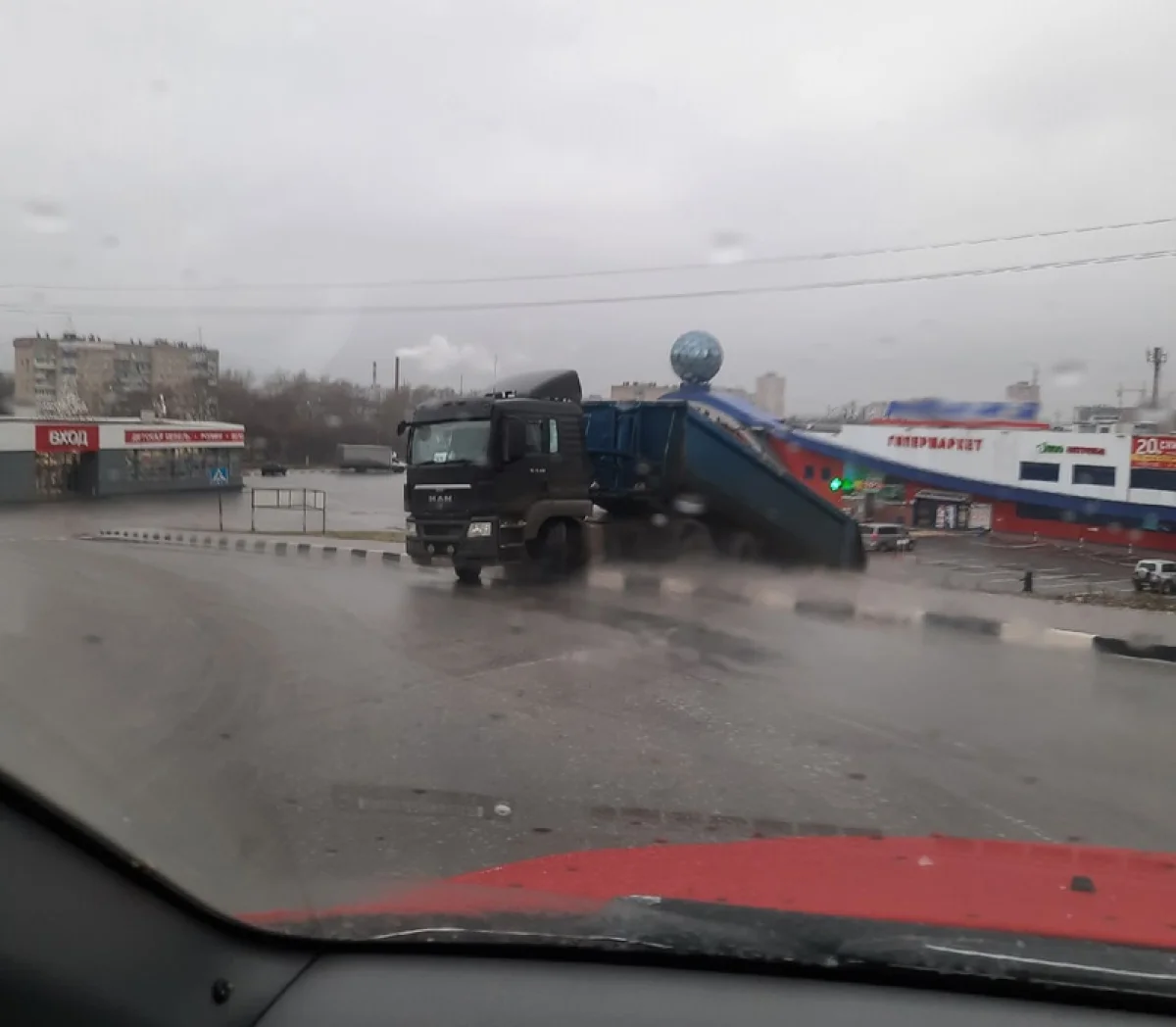 19 ноября на Новомосковском шоссе рядом с крупным супермаркетом большегруз занесло в кювет. Об этом стало известно