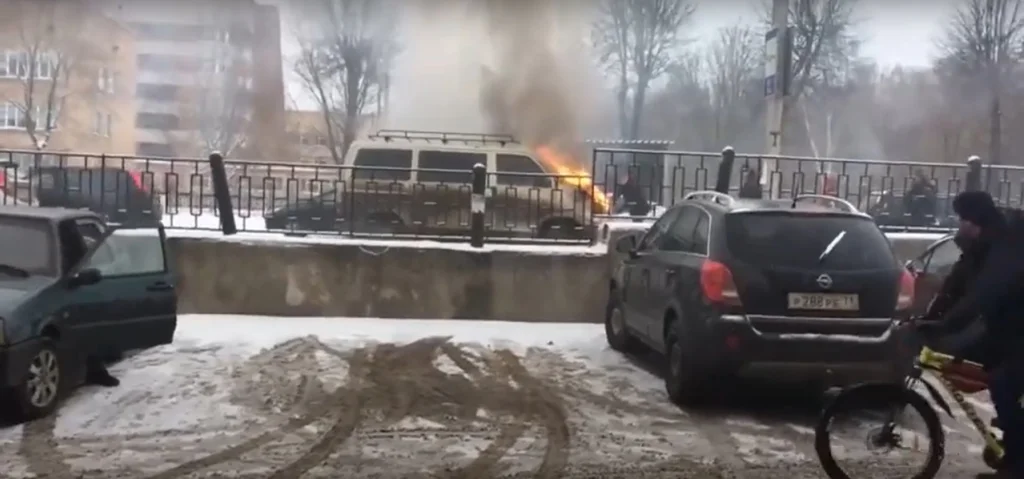 В Тульской области в Новомосковске сгорел минивен. О происшествии сообщили очевидцы в социальных сетях.