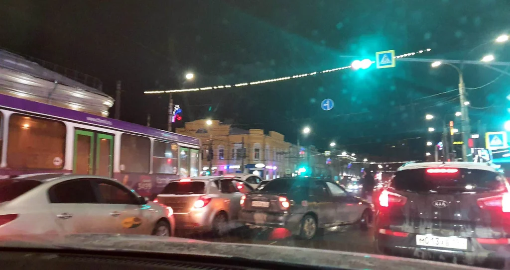 Авария с участием нескольких автомобилей сегодня, в воскресенье, 27 декабря, около 6 вечера, создало сильный затор. На пересечении Советской и проспекта Ленина — пробка. Для движения свободна только одна из трех полос.