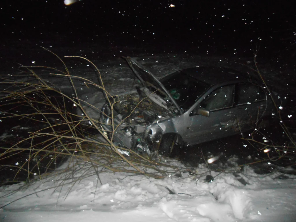 Как результат «Kia Sorento» съехал в придорожный кювет. Надо отдать должное, что дорожные условия в этот момент были не самыми лучшими — начала «завязываться» ночная гололедица. Тут и трезвому-то нелегко за рулем.