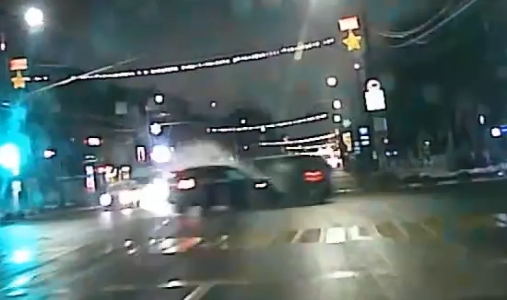 Как можно заметить на записи, микроавтобус начал движение, не дожидаясь желтого сигнала светофора, и в этот самый момент на перекресток выехала иномарка.