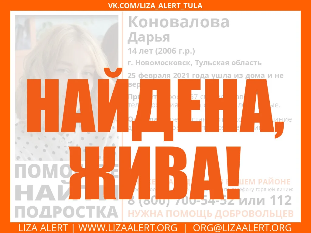 В социальной сети поисково-спасательного отряда «ЛизаАлерт» появилась хорошая новость о том, что правшую в Новомосковске школьницу удалось найти живой.