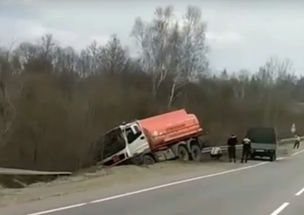 Под Тулой бензовоз съехал в кювет. Видео происшествия очевидцы выложили в социальных сетях.