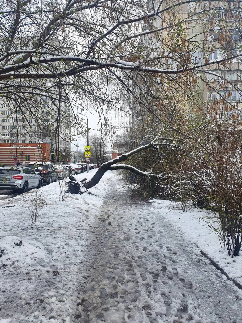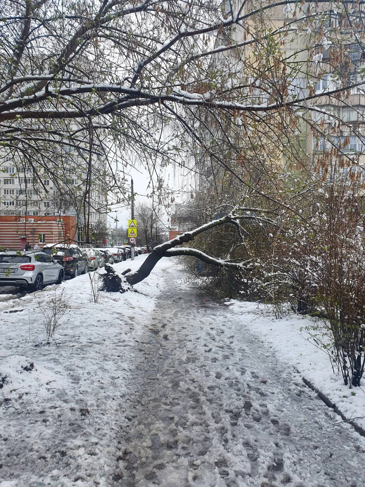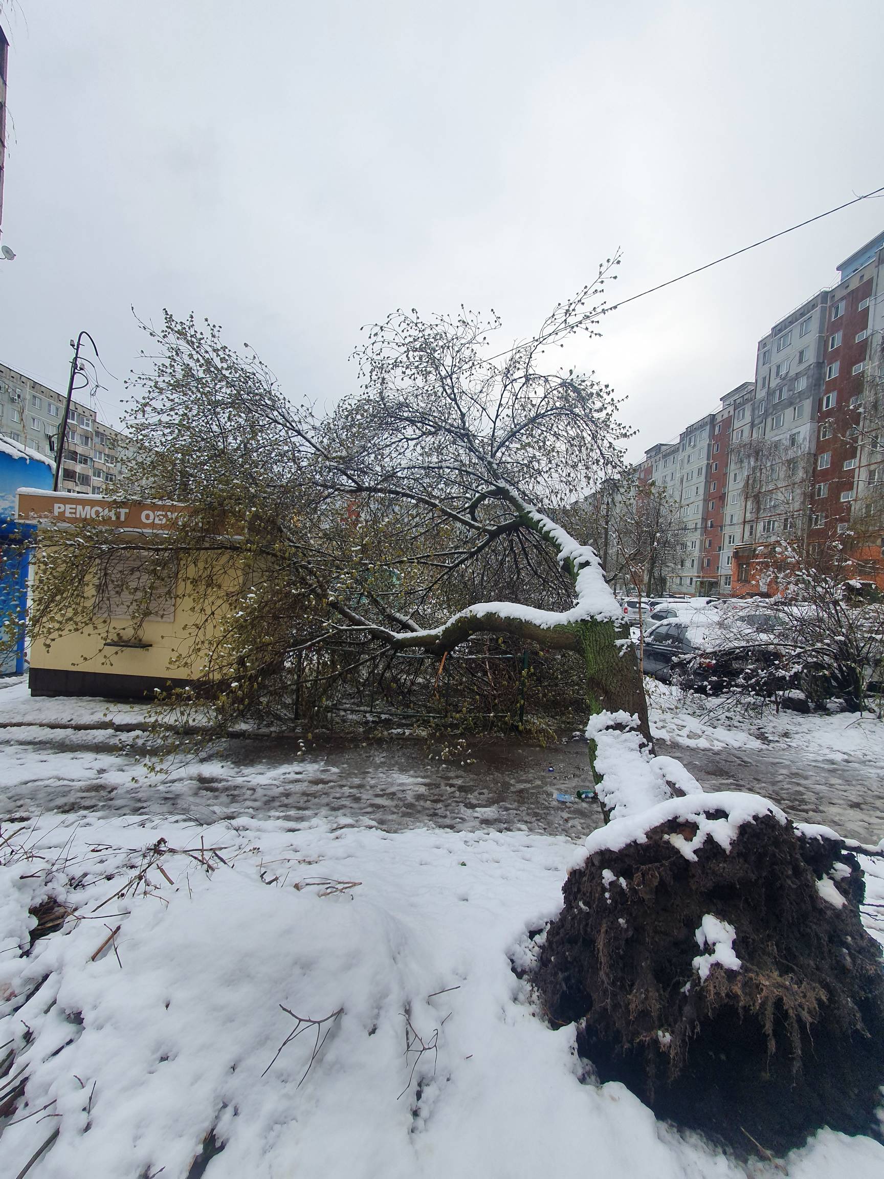 Из-за непогоды в центре Тулы на улице Вересаева упало дерево прямо на тротуар