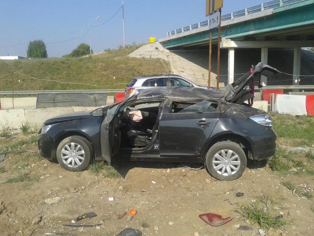 Машина следовавшая в столицу, на 149-м километре автодороги "Крым" врезалась в бетонные блоки. От удара машина перевернулась.