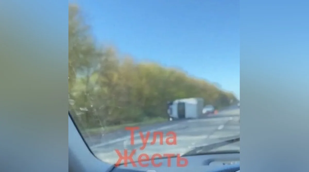 В Плавском районе на трассе столкнулись грузовик и легковой автомобиль. От удара грузовая машина перевернулась. Об аварии сообщили очевидцы, разместив видеозапись в социальных сетях.