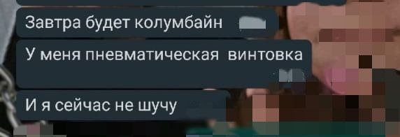 После трагедии в Казани по России пошла волна "подражателей", желающих повторить стрельбу в школе, одного из таких нашли и в Тульской области. Как сообщает телеграм-канал, посвященный борьбе с экстремизмом, учащийся одной из тульских школ разместил в интернете сообщение о запланированном вооруженном нападении на свою школу.